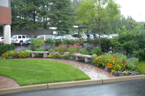 This week, The Garden Continuum's Installation Staff was down in Providence, RI working on a commercial property. TGC designed and installed the landscape which includes dozens of shrubs and trees, multiple walkways and sitting areas, and large perennial and annual beds. Since this property houses many businesses and hundreds of cars and people, we are presented with a variety of landscape challenges. Below, we highlight a few of the challenges we face when maintaining a landscape in an urban environment. Perhaps you face some of these challenges on your own property. If you are interested in seeing more images of the property, check them out below the video.